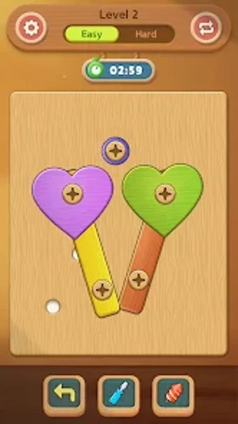 ロイヤルボルト:スクリューパズルは、Androidで利用できる無料の物理ベースのパズルゲームです。プレイヤーは、木製のブロックから空の穴にネジを移動させてレベルをクリアすることが求められます。このゲームは、すべての年齢層のプレイヤーがアクセスできるように簡単な操作を特徴としており、難易度が上がることでゲームプレイが挑戦的で魅力的になります。各レベルでは、プレイヤーは新しい障害物に直面し、パズルを解決するために創造的な思考が必要です。